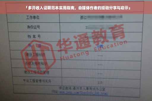 随着自媒体行业的蓬勃发展,越来越多的人选择加入这个行业,希望通过创作内容实现个人价值与收入的增长,本文将为大家分享如何有效地多开收入证明,帮助大家更好地管理个人财务和职业发展。
