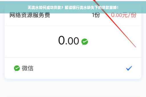 摘要:在银行申请贷款时,没有流水可能会成为一大难题。但在无流水情况下,仍有多种贷款策略可供选择。借款人可提供其他收入证明,如工资条、纳税记录等,以证明还款能力。选择担保贷款或抵押贷款也是途径之一。咨询专业贷款机构或调整贷款申请时间,也有助于提高贷款成功率。在无流水情况下贷款需灵活应对,合理规划财务计划。
