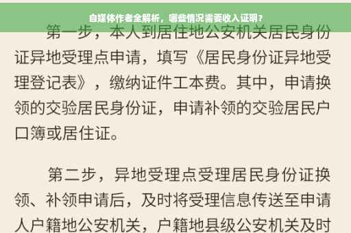 自媒体作者全解析:哪些情况下需要收入证明?文章详细阐述了办理各类事务时,需要提交收入证明的情况。包括但不限于办理贷款、租房、签证申请等场景。作者通过亲身经历和案例分享,帮助读者了解不同场合下收入证明的重要性和作用,提醒大家在办理相关事务时提前做好准备,避免因缺少收入证明而影响办事效率。阅读本文,让你更加明白何时何地需要准备收入证明,避免不必要的麻烦。