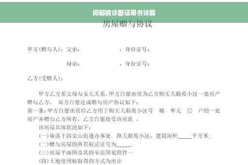 张先生因情绪低落、失眠等症状寻求心理医生的帮助,经过详细的问诊和辅助检查,张先生被确诊为中度抑郁症,心理医生为他填写了抑郁诊断证明书,并制定了治疗方案,遵循医生的建议,张先生逐渐恢复了健康。