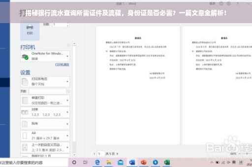 本文详细解析了查询银行流水所需的证件、流程以及注意事项,包括身份证在内的各种证件以及查询流程,在查询银行流水时,请务必携带好相关证件,遵循银行的规定和流程,确保查询顺利进行,也要注意保护个人信息,防止信息泄露,如有疑问,请提前向银行咨询,本文希望能为大家带来帮助。