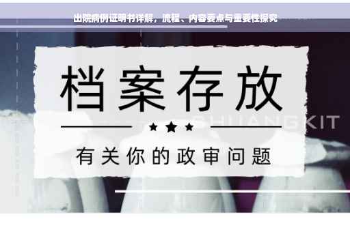 了解出院病例证明书的流程、内容要点及其重要性,有助于患者更好地利用这份证明文件,为后续的康复和治疗提供有力的支持,医院也应加强出院病例证明书的管理,确保其真实性与有效性。