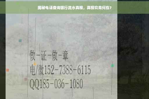 摘要:本文将揭示电话查询银行流水的真相,探究其背后的真实情况。通过深入了解,我们发现电话查询银行流水并非简单的操作,需要用户提供准确的个人信息和验证流程,以确保信息安全和交易安全。本文将介绍查询流程中的注意事项和可能遇到的问题,帮助读者更好地了解银行流水查询的真相。