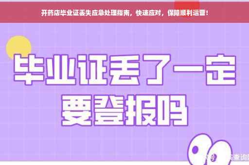 摘要:面对开药店毕业证丢失的紧急情况,不必慌张。本指南提供了一系列应急处理措施。应立即联系毕业学校或相关机构,获取丢失证明的开具。准备好个人身份证明及补办申请。了解相关法律法规,确保处理过程合法合规。补办新证或获取相关证明,恢复执业资格。本指南旨在帮助从业者快速应对毕业证丢失问题,确保药店正常运营。