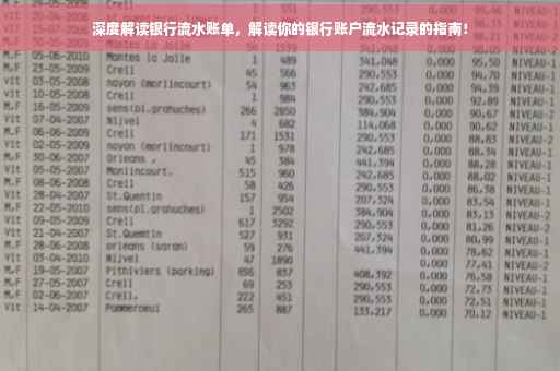 随着互联网技术的发展,银行业务逐渐实现电子化,银行流水账单成为了我们日常生活中不可或缺的一部分,无论是申请贷款、信用卡,还是办理某些金融业务,银行流水账单都是重要的证明材料之一,本文将详细介绍如何解读银行流水账单,帮助大家更好地了解自己的财务状况。