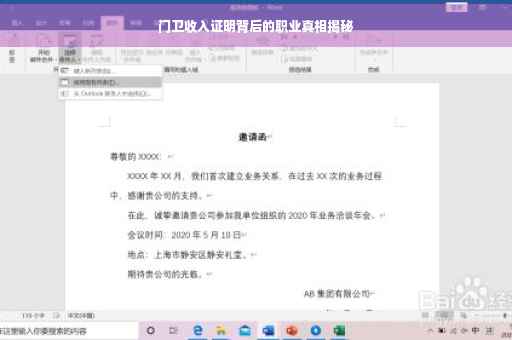 摘要:本文将揭示门卫职业背后的真实面貌,通过对其收入证明的分析,了解门卫职业的收入状况、工作性质和社会地位。文章旨在提供全面的信息,帮助公众更好地理解这一职业的特点和重要性。