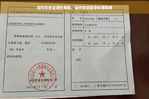 摘要:面对毕业证遗失的危机,我们需要冷静应对。应立即向学校相关部门报案并登记丢失情况。按照学校规定办理丢失证明和登报声明,保留相关证据。可通过技术手段如电子证照等备份证明自身学历。加强证件保管意识,避免类似情况再次发生。遇到证件失窃等紧急状况时,务必保持冷静,及时采取措施,确保个人权益不受损害。