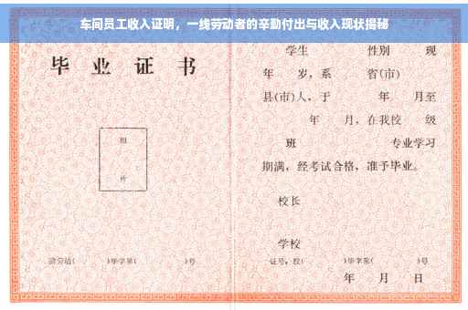 随着社会的不断发展,车间员工在工业生产中发挥着举足轻重的作用,他们辛勤工作,为国家的经济建设做出了巨大贡献,他们的收入状况如何?本文将深入探讨车间员工的收入证明问题,关注他们的辛勤付出与收入现状,并呼吁社会各界给予更多的关注和支持。