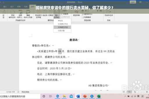 摘要:本文将揭示房贷申请过程中银行流水的重要性及其大奥秘。通过深入了解银行流水,申请人可以更好地准备申请材料并提高贷款申请成功率。本文将介绍银行流水的作用、如何正确呈现银行流水以及需要注意的细节,帮助读者更好地了解房贷申请过程中的关键环节。