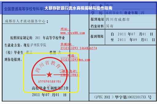 摘要:本文将揭示大额存款银行流水的真相与操作指南。通过深入了解银行流水的重要性,您将掌握如何合理规划和操作大额存款,避免不必要的风险和误解。本文将提供实用的操作指南,帮助您更好地管理财务,实现资产增值。阅读本文,让您对大额存款银行流水有更清晰的认识和了解。