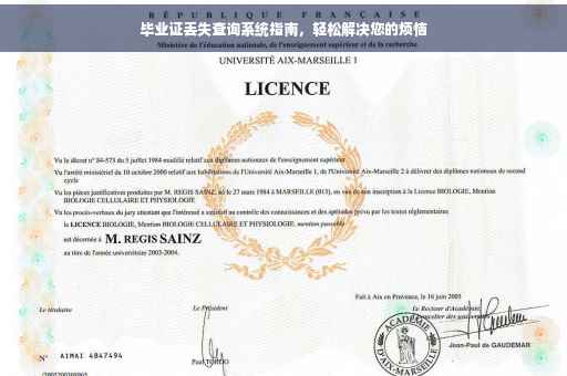 在快节奏的生活中,我们可能会遇到各种意外情况,其中之一就是毕业证丢失,一旦毕业证丢失,很多人会感到焦虑和无助,本文将为您介绍如何通过查询系统找回丢失的毕业证,以及一些应对措施和建议,帮助您度过这个困难时期。