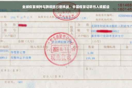 摘要:全球疫苗接种趋势下,中国疫苗证明书成为跨境旅行新挑战。随着疫苗接种普及,入境中国需提交疫苗证明,反映了全球疫苗接种与跨境旅行的紧密联系。这一要求不仅关乎公共卫生安全,也影响国际间人员流动。面对新形势,各国需加强疫苗信息互通与认证合作,共同应对全球疫苗接种与跨境旅行带来的挑战。