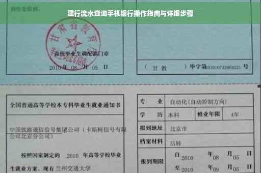 摘要:,,通过手机银行查询建行流水,步骤简便。打开建行手机银行应用并登录账户;点击“账户查询”或“流水查询”选项;选择查询的时间范围;查看并保存流水记录。操作全程直观易懂,方便快捷。