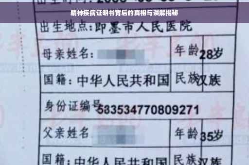 当今社会,随着心理健康逐渐受到重视,精神疾病成为了公众关注的焦点话题,由于大众对精神疾病缺乏深入了解和认识,常常伴随着误解和偏见,为此,本文将详细解读精神健康证明书的作用和意义,旨在消除误解,提高公众对精神疾病的认知和理解。