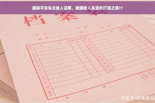 随着汽车普及率的提高,越来越多的人选择购买车辆作为出行工具,平安车主作为一个庞大的群体,其收入来源的多元化和稳定性备受关注,本文将深入探讨平安车主的收入证明问题,帮助广大车主更好地规划个人财务,实现稳健的收入增长。