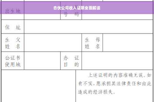 摘要:,,本文将详细解析合伙公司的收入证明。文章介绍了合伙公司收入证明的重要性,包括其在财务管理、税务申报等方面的作用。文章还解释了收入证明的具体内容,如收入来源、金额、分配方式等,并强调了合规性和真实性。本文还探讨了如何正确理解和使用收入证明,以及注意事项。这些内容对于了解合伙公司收入证明的相关知识具有重要意义。