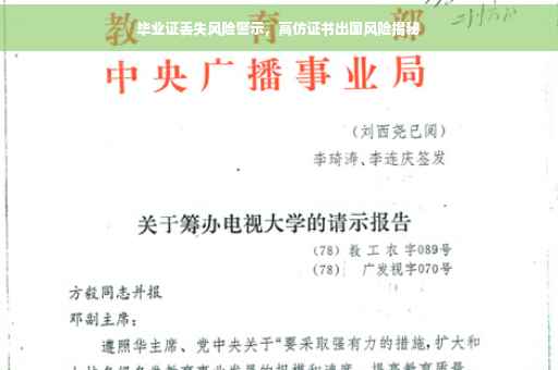 摘要:对于毕业证丢失后选择制作高仿证书并打算出国的人士,需警惕潜在风险。使用高仿证书出国可能涉及伪造文书行为,导致法律纠纷、信用受损甚至可能遭拒入境。真实毕业证丢失应按规定程序进行补办,并妥善保存相关证明文件。出国前务必确保所有证件真实有效,以避免不必要的麻烦。