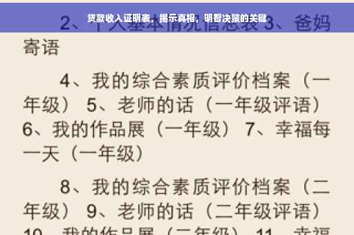 摘要:贷款收入证明表是一份重要的文件,它揭示了借款人的真实收入状况,帮助贷款机构评估借款人的还款能力。这份证明表可以帮助你做出明智的贷款决策,确保你的财务状况稳健可靠。通过查看收入证明表,你可以了解借款人的收入水平、稳定性和来源,从而做出更加明智的贷款选择。在贷款过程中,了解真相并基于事实做出决策是至关重要的。