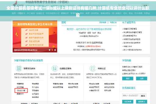 全国计算机等级考试一级b或以上级别证书有二级vb、二级c语言、二级C++、二级Java、二级WEB程序设计、二级VFP、三级PC技术、三级信息管理技术、三级数据库技术、三级网络技术等。 全国计算机等级考试(NationalComputerRankExamination,以下简称NCRE),是经原国家教育委员会(现教育部)批准,由教育部考试中心主办,面向社会,用于考查非计算机专业应试人员计算机应用知识与技能的全国性计算机水平考试体系。