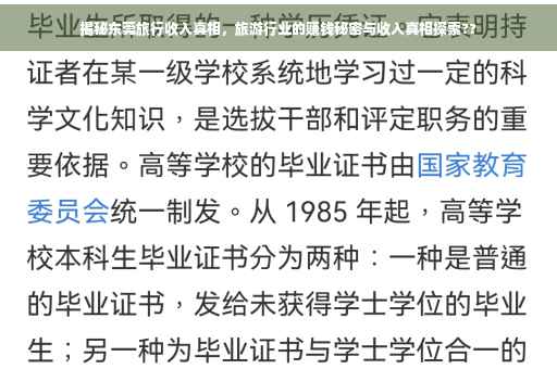 摘要:本文将揭示东莞旅行收入证明和旅游行业的赚钱秘密与收入真相。通过深入了解旅游行业的运营模式、收入来源和盈利潜力,帮助读者了解旅游行业的盈利方式和收入水平,为想要从事旅游行业的人士提供参考。本文还将探讨旅游行业的未来趋势和发展前景。