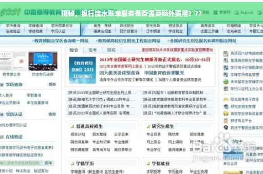 摘要:本文将探讨银行流水账单服务,揭示该服务是否需要额外费用。文章介绍了银行流水账单的概念和作用,分析了不同银行对于提供此项服务的收费情况,并探讨了客户对于此项服务的看法和反馈。通过本文的阐述,读者可以更好地了解银行流水账单服务的相关情况,以便做出更明智的决策。