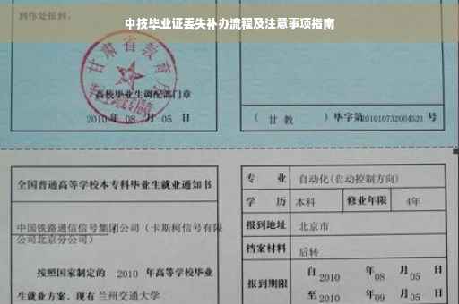 摘要:中技毕业证丢失,需及时补办。补办流程包括前往原发证学校或教育部门,提交相关证明材料并填写申请表格。注意事项包括提前备份个人信息以防万一,确保提交的材料真实有效,遵守相关规定并按时领取补办证书。补办过程中需留意细节,以免影响个人前途与发展。