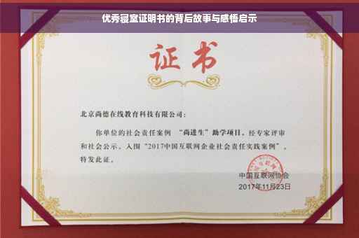 摘要:在这篇背后故事中,我们了解到主人公通过努力获得了优秀寝室证明书的过程和感悟。经过团队成员的共同努力和相互支持,他们不仅营造了良好的寝室氛围,还通过共同学习和成长取得了优异的成绩。这个证明书的背后,是他们坚持不懈、团结协作的精神和追求卓越的决心。这段经历让他们更加珍惜团队的力量,感悟到共同努力的重要性。