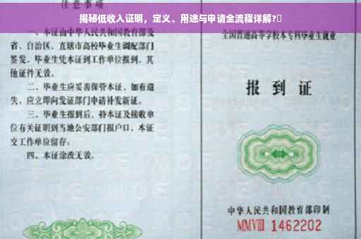 摘要:本文将为你深入解析低收入证明的定义、用途以及申请流程。低收入证明是用于证明个人或家庭收入状况的一种文件,常用于申请社会福利、贷款、租房等场合。本文将详细介绍如何申请低收入证明,包括所需材料和流程,帮助读者更好地理解和应对相关事宜。