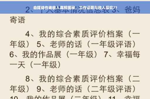 自媒体时代已经来临,越来越多的人选择投身于自媒体行业,希望通过创作内容实现自己的价值和收入的增长,作为自媒体作者,我们的收入来源多种多样,其中工作证明收入也是一部分,本文将深入探讨自媒体作者的工作证明收入,带您了解这一领域的真实情况。