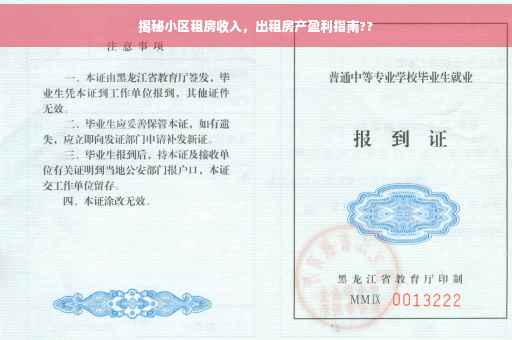 随着城市化进程的加速,越来越多的人选择离开家乡前往城市谋求发展,对于初入城市的租房者来说,小区租房成为了他们的首选,而对于房产所有者来说,出租房产则成为了一种重要的收入来源,本文将详细介绍小区租房收入证明的相关知识,帮助大家了解出租房产的盈利之道。