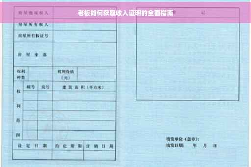 随着经济的发展和社会的进步,越来越多的人开始关注个人收入证明的重要性,作为企业的老板或高管,获得收入证明不仅有助于个人财务管理,还能提升信用度,为未来的商业合作或融资活动铺平道路,本文将详细介绍老板们如何获得收入证明,并探讨相关注意事项。