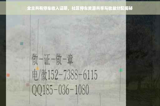 随着城市化进程的加速,停车难已成为许多城市居民面临的共同问题,在这样的背景下,业主共有停车收入逐渐成为许多住宅小区和商务区域的重要收入来源之一,本文将围绕业主共有停车收入证明这一主题,探讨社区停车资源的共享与收益分配问题,以期为读者提供更多了解和参考。