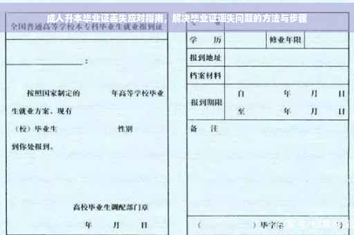 随着社会的发展和竞争的加剧,越来越多的人选择通过成人教育提升学历水平,有时候不幸的事情会发生,比如成人升本毕业证丢失,当面临这样的情况时,我们应该如何应对呢?