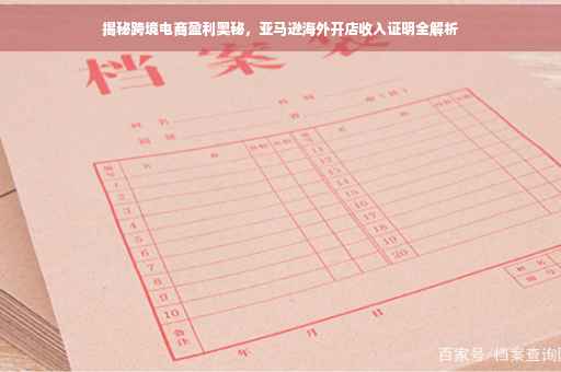 随着全球化的加速和互联网的普及,越来越多的企业和个人开始关注跨境电商这一领域,亚马逊作为全球最大的电商平台之一,吸引了众多海外开店者的目光,本文将为您详细介绍亚马逊海外开店收入证明的相关内容,带您了解跨境电商的盈利奥秘。