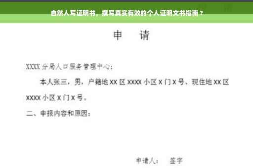 在现代社会中,自然人证明书的重要性日益凸显,无论是办理个人业务、证明个人身份,还是其他场合,一份真实有效的证明书都能为我们提供重要的帮助,本文旨在为读者提供详细的指导,以撰写一份规范、合法、有效的自然人证明书。