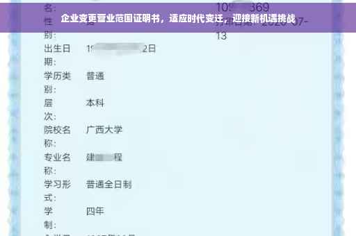 企业变更营业范围是适应市场需求和时代变迁的重要举措,通过变更营业范围,企业可以拓展新的业务领域,提高竞争力,实现可持续发展,在变更营业范围过程中,企业也需要注意相关法律法规、市场调研、资源配置、手续办理以及内部管理和风险控制等方面的问题,希望本文能为企业变更营业范围提供一定的参考和帮助。