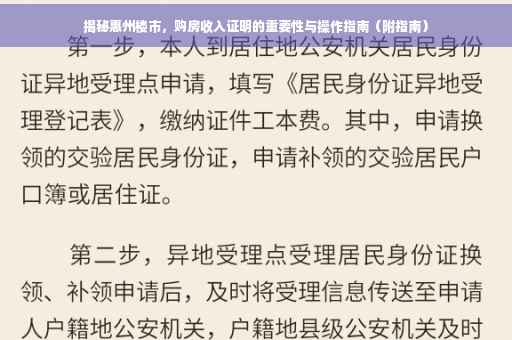 随着城市化进程的加快,惠州这座美丽的城市吸引了众多购房者的目光,在购房过程中,收入证明是不可或缺的一环,本文将为您详细介绍惠州购房收入证明的重要性、作用、办理指南以及惠州的楼市概况和购房注意事项。