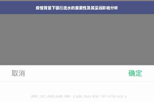 摘要:在当前疫情背景下,银行流水的重要性愈发凸显。它不仅关乎个人经济状况的评估,更与企业资金状况息息相关。银行流水能够反映个人或企业的收支状况,为信用评估提供依据。疫情影响下,稳定的银行流水有助于个人和企业获得信贷支持,促进经济活动的正常进行。分析银行流水的影响,对于评估疫情对经济的影响以及个人和企业的应对策略具有重要意义。