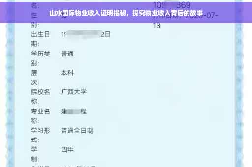 随着城市化进程的加速,物业管理行业逐渐崭露头角,成为城市生活中不可或缺的一部分,山水国际作为一个知名的住宅小区,其物业管理公司的收入证明更是备受关注,本文将详细介绍山水国际物业的收入证明,帮助读者了解物业收入的构成和背后的故事。