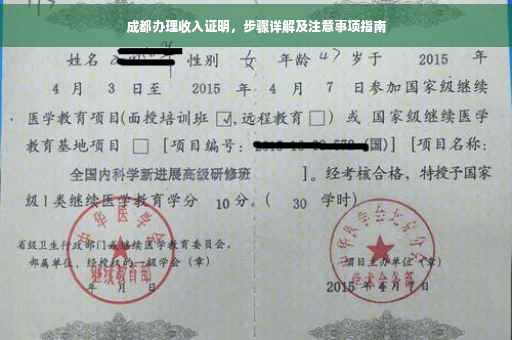 摘要:想要在成都办理收入证明,需遵循一定步骤与注意事项。准备好相关证件,如身份证、工作证或劳动合同。向所在单位人事部门或财务部门提出申请,填写收入证明表格。在办理过程中,需注意证明内容真实性与格式规范,确保各项信息准确无误。还需留意办理时间和注意事项,以免耽误使用。遵循这些步骤和注意事项,将顺利获得收入证明。