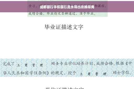 摘要:成都银行手机银行流水导出攻略:用户可通过手机银行便捷地导出个人银行账户流水记录。步骤包括登录银行APP,进入账户管理页面,选择导出流水功能,设置时间范围并确认导出。此功能方便用户随时随地查看和打印银行流水,适用于个人财务管理和业务办理。