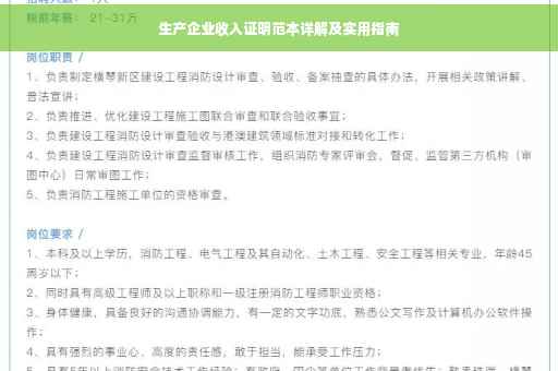 随着社会的不断发展,越来越多的人开始关注个人收入证明的重要性,特别是在求职、贷款等方面,一份规范、真实的收入证明往往能够起到关键作用,为此,本文旨在为生产企业提供一个收入证明的范本,以供参考。