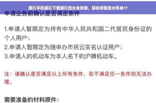 想要通过建行手机银行下载流水,你需要满足以下条件: