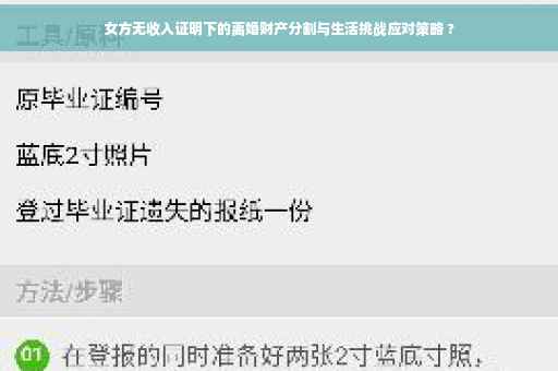 摘要:离婚女方无收入证明,面临财产分割和生活挑战。面对这种情况,女方应寻求亲友支持,积极寻找就业机会,确保稳定收入来源。了解法律规定,争取合理财产分割,保护自身合法权益。面对生活挑战,需调整心态,合理规划财务,逐步适应新生活。