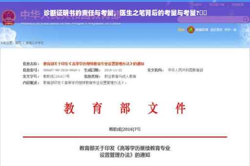 摘要:,,本文讨论了医生撰写诊断证明书的过程,其中涉及了证明背后的责任与考量。医生在开具诊断证明书时需谨慎,确保其准确性、真实性和合法性。这不仅关乎患者的权益,也涉及到医生的职业道德和法律责任。医生在书写诊断证明书时需全面考虑患者的病情、诊断依据及治疗方案,以确保证明的有效性及可靠性。