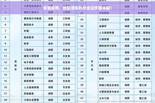 毕业证丢失不用慌张,这篇全面指南帮你找回遗失的毕业证。你需要前往原毕业学校教务处或学籍管理部门进行申请补办。准备好相关证件和证明材料,如身份证、学历证明等。填写相关申请表格并提交审核。学校会核实你的毕业信息并重新发放毕业证。你还可以在学信网上进行学历认证,确保学历信息的真实性。这篇指南为你提供详细的步骤和注意事项,让你轻松找回遗失的毕业证。