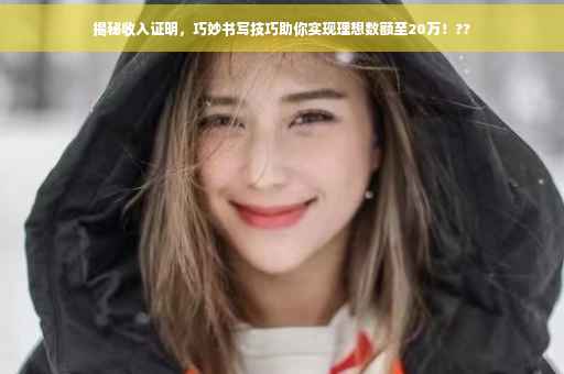 摘要:本文将为你揭秘如何巧妙书写收入证明以达到20万的理想数额。通过合理的格式排版、准确填写收入构成以及提供必要证明材料,让你在申请贷款、信用卡或展示自身经济实力时更加得心应手。遵循本文建议,让你的收入证明更具说服力,实现个人财务目标。