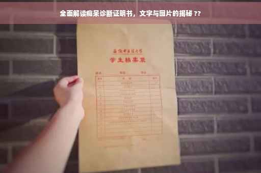 摘要:本文将全面解读痴呆诊断证明书,从文字到图片,为读者揭示诊断证明书的秘密。通过本文,您将了解如何正确解读诊断证明书上的各项信息,包括诊断依据、病情评估、治疗方案等。本文还将介绍痴呆症状的表现和预防措施,帮助读者更好地了解和应对痴呆问题。阅读本文,将为您带来全面的痴呆诊断知识,为您的健康保驾护航。