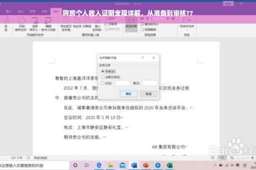 摘要:本文将详细介绍购房个人收入证明的准备到审核的全过程。内容包括了解收入证明的重要性,准备相关证明材料,如工资单、税单等,以及提交材料后的审核流程。本文旨在帮助购房者顺利获取个人收入证明,为购房过程提供必要的支持。
