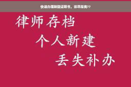 摘要:本指南为你详细介绍如何快速办理转院证明书。内容包括了解转院证明书的必要性、准备相关材料、选择合适的医疗机构、遵循流程办理转院手续等。通过本指南,你将能够更快速地获取转院证明书,以便及时获得更合适的医疗服务。
